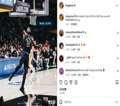 詹姆斯写道:“无论你爱我还是恨我,你都会记住我。”