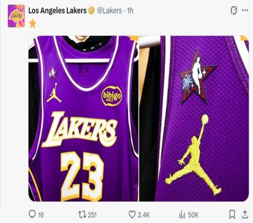 湖人也在赛前第一时间调整詹姆斯的球衣,用全明星补丁取代了原本的23赛季补丁。